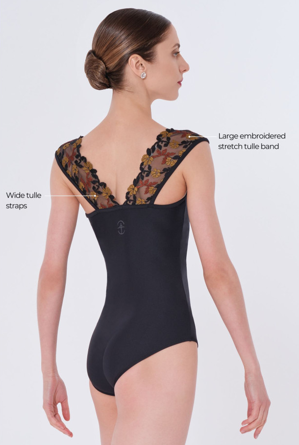● Maillot de tirantes anchos de tul ● Escote recto delante y detrás ● Disponible en 5 colores ● Microfibra - Tul elástico bordado