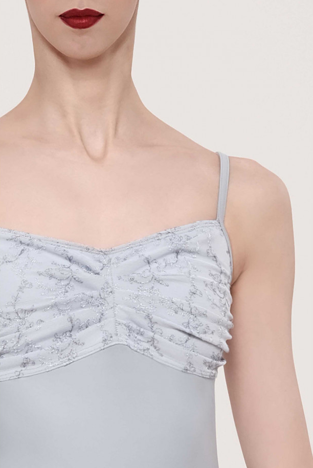 Maillot de Danza para Mujer – Colección Mademoiselle. Este maillot con estampado floral es muy elegante. El panel de microfibra recubierto de tul sobre el pecho crea un corte imperio con varios pliegues para un efecto delicado. El panel proporciona un soporte eficaz para el busto. Este maillot camisola está confeccionado con nuestra microfibra de elastano y tul elástico bordado. La espalda de tul llega hasta la cintura para dejar al descubierto la piel.