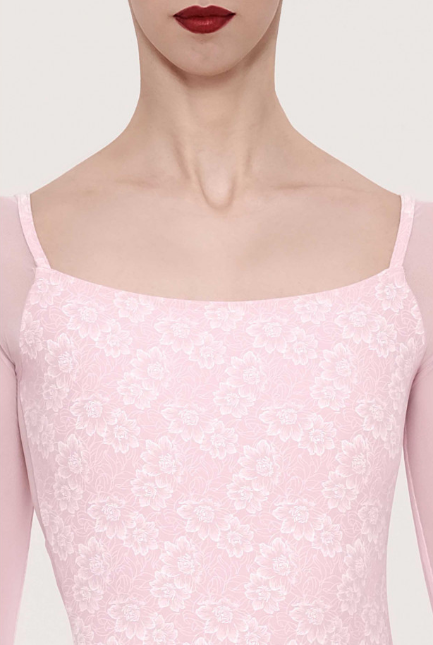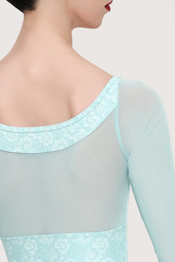 Maillot de Danza para Mujer – Colección Éclat de Fleurs Fresia. Este maillot de manga larga presenta un amplio escote delantero y trasero. Su microfibra estampada evoca delicadamente un magnífico jardín de anémonas. Lucirás una silueta elegante sin sacrificar la comodidad, incluso al entrenar con bajas temperaturas. La espalda y las mangas de este maillot están confeccionadas en tul elástico transparente para realzar cada detalle de tus movimientos.
