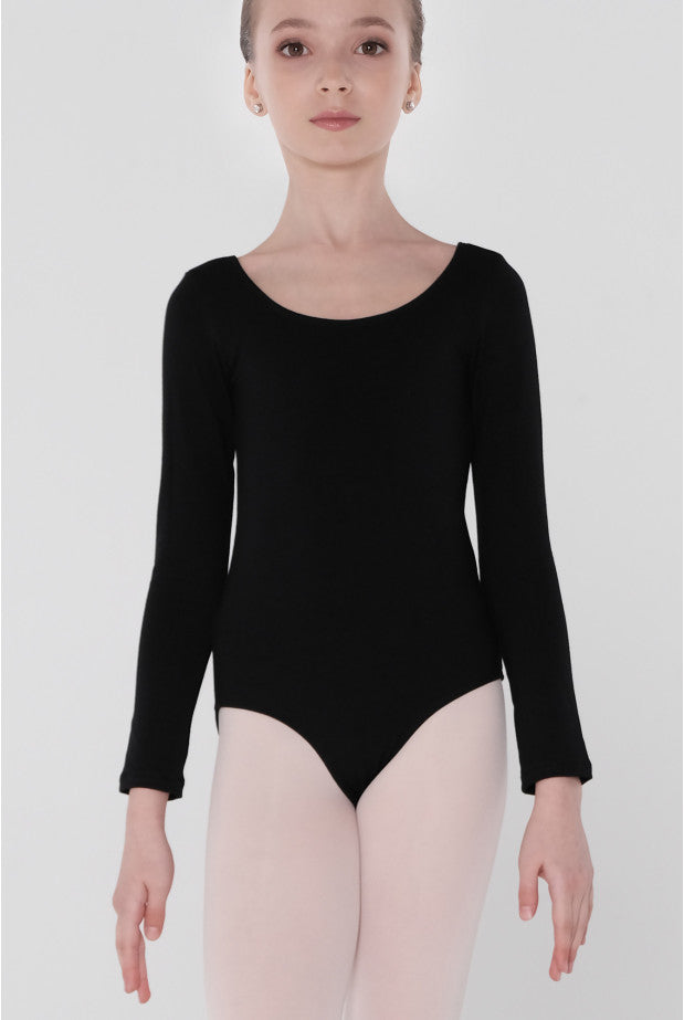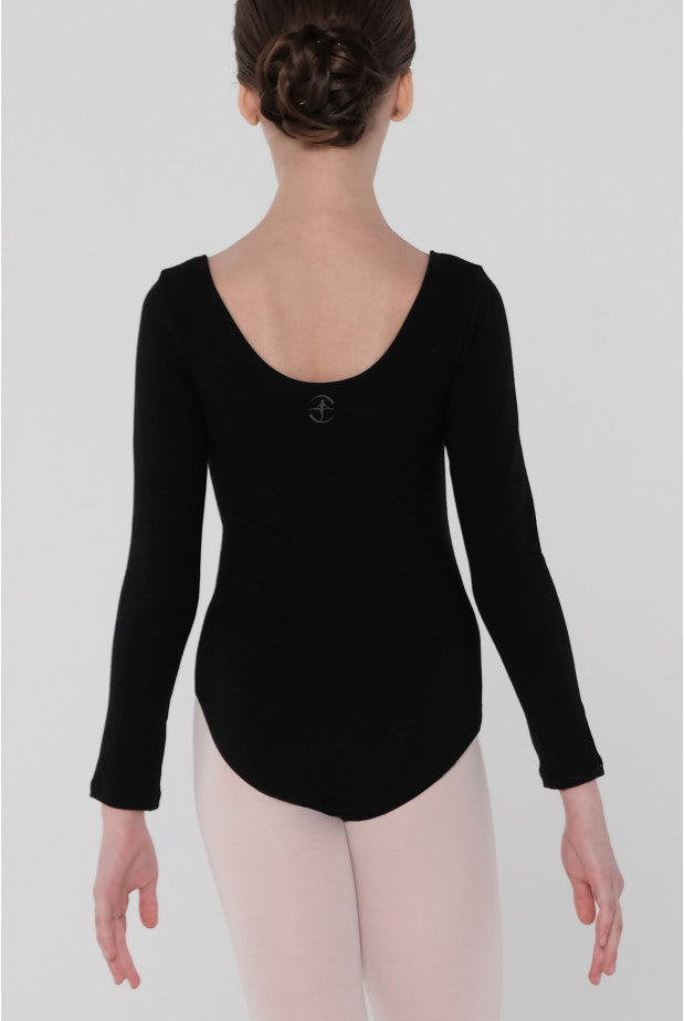 Este maillot clásico de manga larga presenta un escote redondo, una espalda tradicional y discreta y una pernera con corte de ballet. Las mangas largas ofrecen protección y cobertura en los días fríos del estudio. La combinación de algodón y elastano crea un tejido extremadamente cómodo, suave, duradero y con un ajuste perfecto.