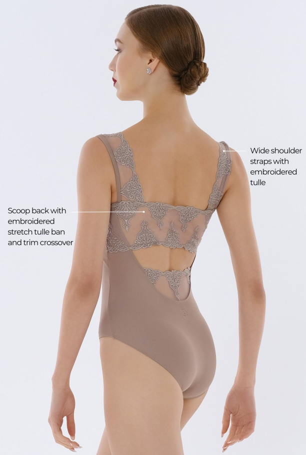 Entre belleza y soporte, ¡experimenta la versatilidad de nuestro hermoso maillot de tirantes anchos AMINA! Este maillot de dos tejidos presenta un escote modesto en la parte delantera, así como un profundo escote en V en la espalda. Está adornado con inserciones de tul bordado tono sobre tono, que le dan un aspecto muy de alta costura. Cada combinación de motivos y colores de hilo se elige cuidadosamente para realzar el diseño general. Ideal tanto para entrenamiento como para actuación. AMINA está disponible en una selección de cinco tonos intensos.